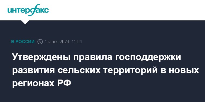 Утверждены правила господдержки развития сельских территорий в новых регионах РФ