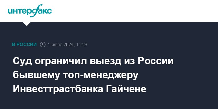 Суд ограничил выезд из России бывшему топ-менеджеру Инвесттрастбанка Гайчене