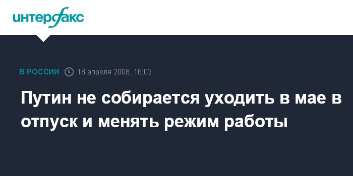 Сардиния. 18 апреля. INTERFAX.RU - Президент РФ Владимир Путин не намерен уходить в отпуск после инаугурации нового главы государства.