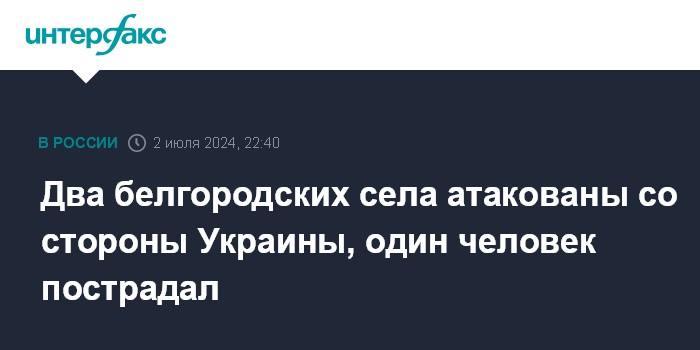 Москва. 2 июля. INTERFAX.RU - Губернатор Белгородской области Вячеслав Гладков сообщил об атаках на два села с украинской стороны.