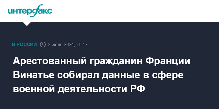 Арестованный гражданин Франции Винатье собирал данные в сфере военной деятельности РФ