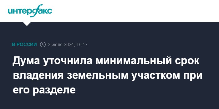 Дума уточнила минимальный срок владения земельным участком при его разделе