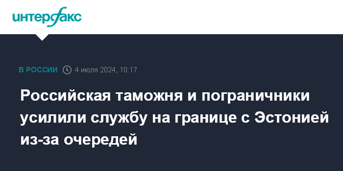 Москва. 4 июля. INTERFAX.RU - Пункт пропуска "Ивангород" (Ленинградская область) на границе России и Эстонии перегружен, сообщает в четверг пресс-служба Северо-Западного таможенного управления (СЗТУ), таможня и пограничники из-за этого работают в усиленном режиме.