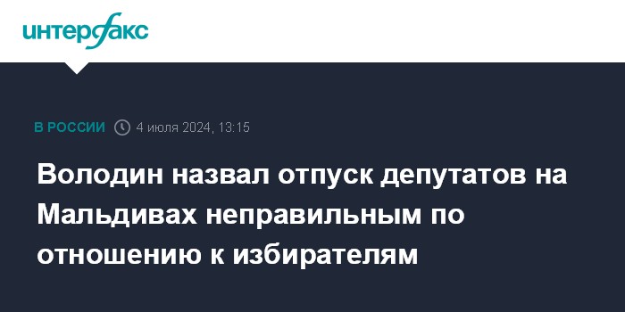 Володин назвал отпуск депутатов на Мальдивах неправильным по отношению к избирателям