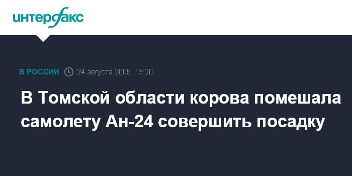 В Томской области корова помешала самолету Ан-24 совершить посадку