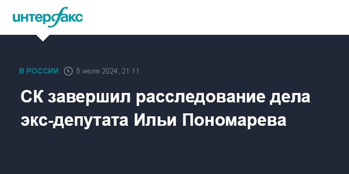 Москва. 5 июля. INTERFAX.RU - Столичные следователи завершили расследование уголовного дела в отношении бывшего депутата Госдумы Ильи Пономарева (признан иноагентом в РФ), обвиняемого в оправдании терроризма и распространении фейков об использовании Вооруженных сил России.