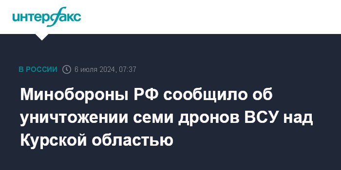 Минобороны РФ сообщило об уничтожении семи дронов ВСУ над Курской областью