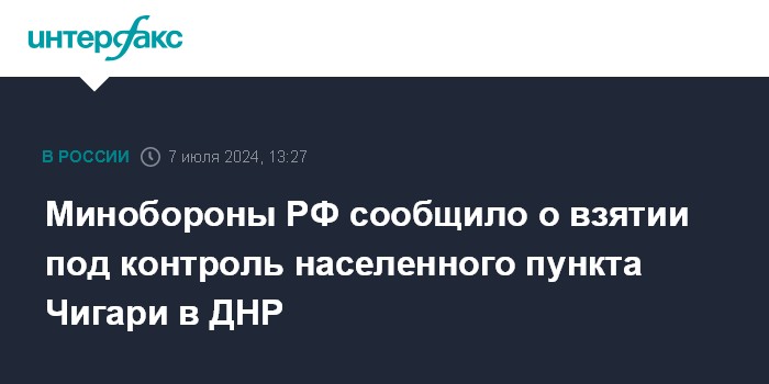 Минобороны РФ сообщило о взятии под контроль населенного пункта Чигари в ДНР