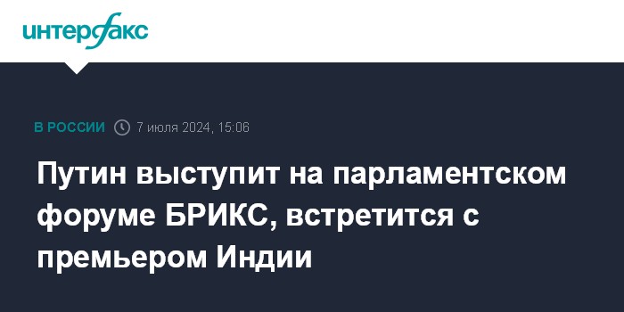 Путин выступит на парламентском форуме БРИКС, встретится с премьером Индии