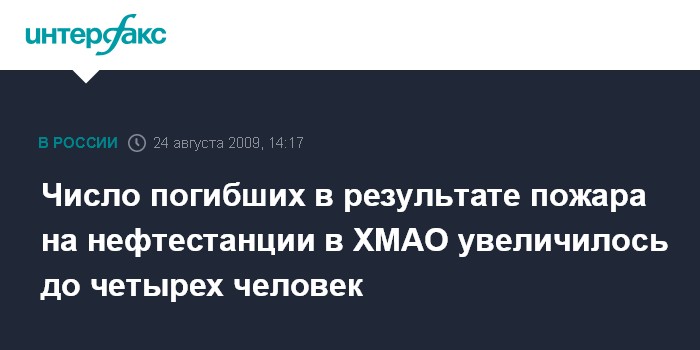 Екатеринбург. 24 августа. INTERFAX.RU - В больнице города Сургута скончался один из пожарных, пострадавших при пожаре на нефтестанции "Канда" в ХМАО, сообщил помощник руководителя следственного управления СКП РФ по ХМАО-Югре Олег Меньших.