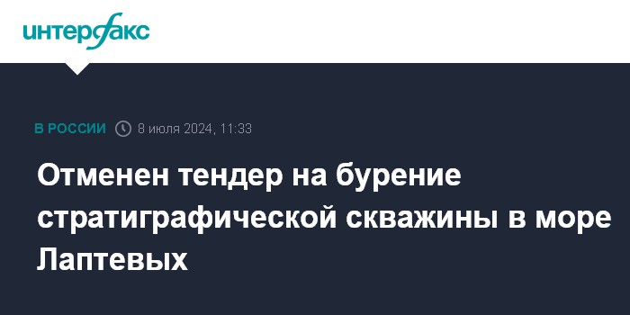 Москва. 8 июля. INTERFAX.RU - Всероссийский научно-исследовательский институт геологии и минеральных ресурсов Мирового океана имени академика Грамберга (ФГБУ "ВНИИОкеангеология") отменил тендер на бурение малоглубинной стратиграфической скважины на шельфе моря Лаптевых.