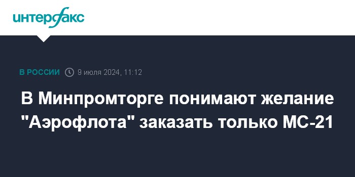 В Минпромторге понимают желание "Аэрофлота" заказать только МС-21