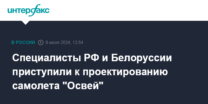 Ранее белорусский вице-премьер Петр Пархомчик сообщал, что первый образец совместного с РФ самолета "Освей" планируют произвести в Белоруссии в 2026 году. "Небольшой самолет, 19-местный, он носит название "Освей". Мы работаем с нашими российскими партнерами на стадии разработки самолета. Соответственно, мы будем иметь право производить этот самолет", - говорил Пархомчик в апреле.