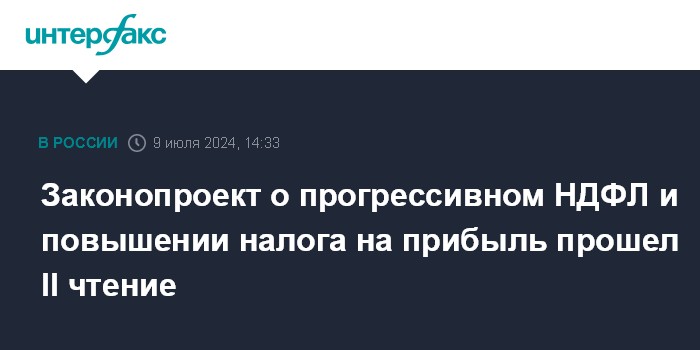 Москва. 9 июля. INTERFAX.RU - Госдума на заседании во вторник приняла во втором чтении законопроект о совершенствовании налоговой системы, поправки включают введение с 2025 г. дифференцированного НДФЛ в зависимости от размера и вида полученного гражданином дохода и повышение налога на прибыль организаций с 20% до 25%.