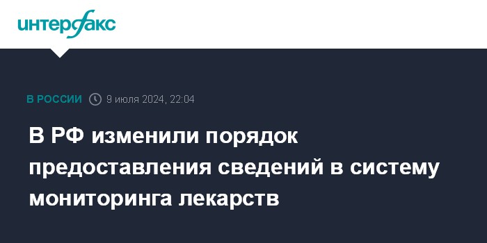 Москва. 9 июля. INTERFAX.RU - Правительство России изменило положение о системе мониторинга движения лекарственных препаратов: теперь при передаче препаратов, которые подлежат предметно-количественному учету и отпускаются по рецепту врача, станет обязательным прямой порядок представления сведений в систему мониторинга.
