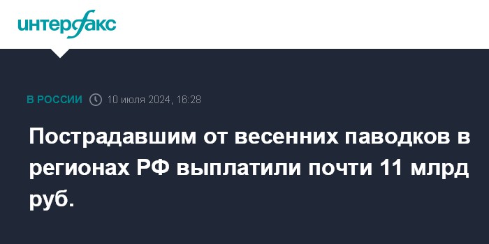 Пострадавшим от весенних паводков в регионах РФ выплатили почти 11 млрд руб.