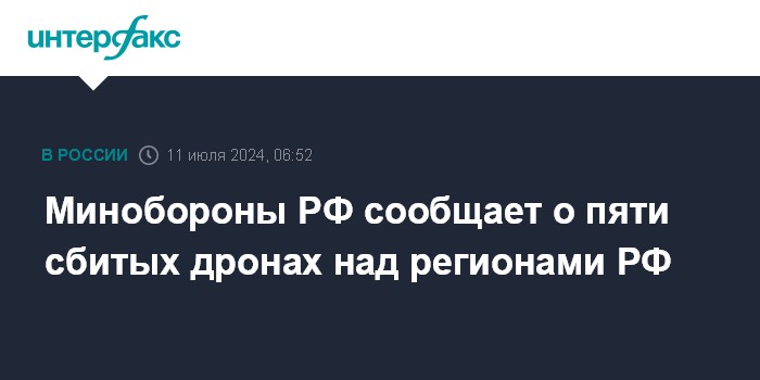 Минобороны РФ сообщает о пяти сбитых дронах над регионами РФ