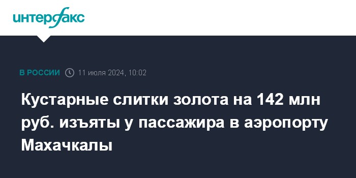 Москва. 11 июля. INTERFAX.RU - ФСБ сообщила об изъятии более 50 кустарно изготовленных слитков золота у пассажира в аэропорту столицы Дагестана Махачкалы, возбуждено уголовное дело.