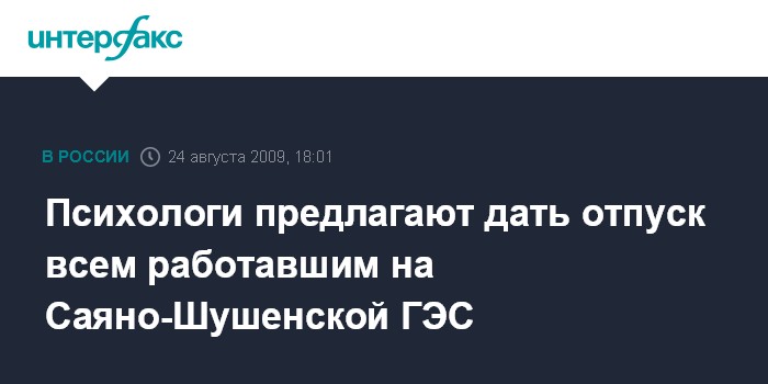 Психологи предлагают дать отпуск всем работавшим на Саяно-Шушенской ГЭС