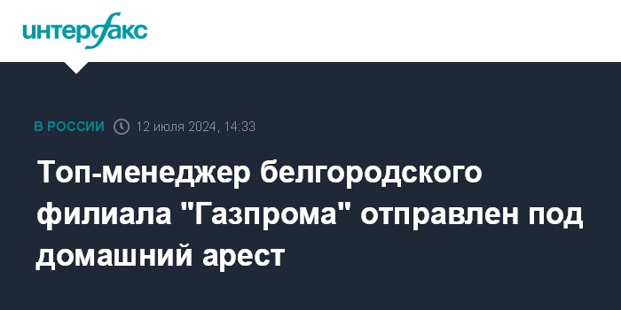 Топ-менеджер белгородского филиала "Газпрома" отправлен под домашний арест