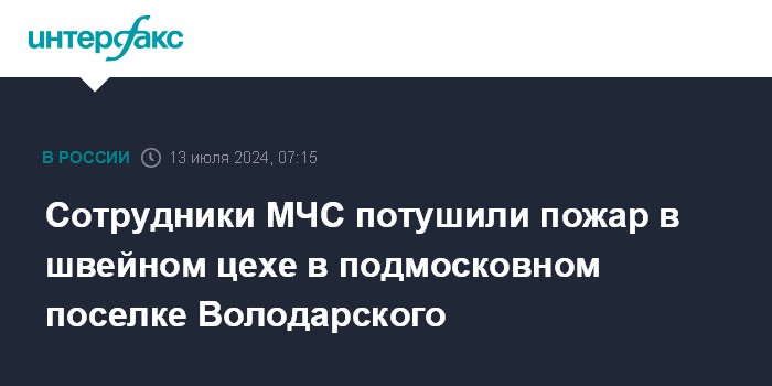 Сотрудники МЧС потушили пожар в швейном цехе в подмосковном поселке Володарского