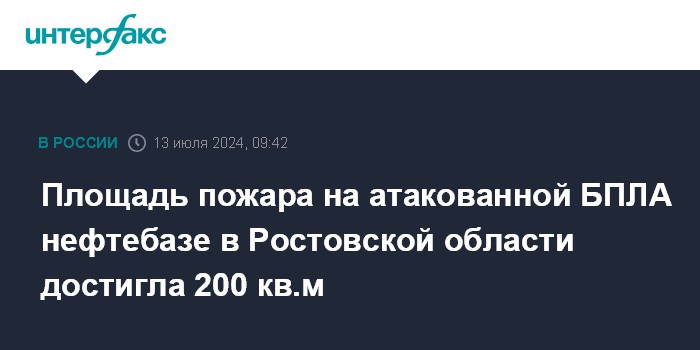 Ранее губернатор сообщил что в 04:00 мск субботы в результате атаки БПЛА произошло возгорание на нефтебазе в Цимлянском районе Ростовской области. По предварительным данным, погибших и пострадавших нет, пожару присвоен 3 ранг, к тушению привлечены 49 человек и 14 единиц техники.