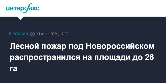 Москва. 14 июля. INTERFAX.RU - Площадь пожара лесного массива под Новороссийском выросла приблизительно до 26 га, сообщает в воскресенье министерство природных ресурсов Краснодарского края.