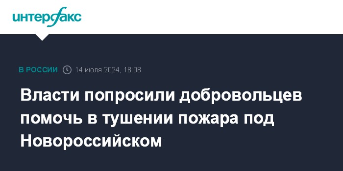 Москва. 14 июля. INTERFAX.RU - Тушение крупного пожара под Новороссийском осложняется сильным ветром, необходима помощь добровольцев, сообщает в воскресенье мэр города Андрей Кравченко.