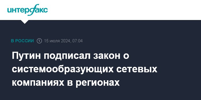 Путин подписал закон о системообразующих сетевых компаниях в регионах
