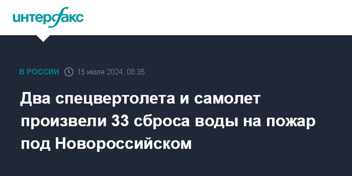 Два спецвертолета и самолет произвели 33 сброса воды на пожар под Новороссийском