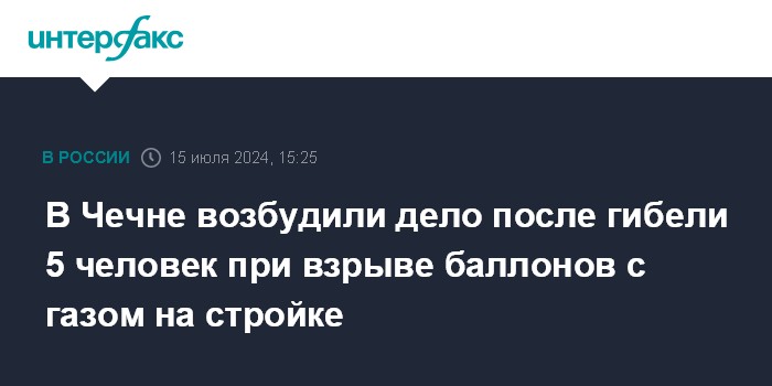 В Чечне возбудили дело после гибели 5 человек при взрыве баллонов с газом на стройке