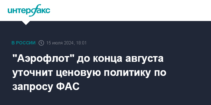 "Аэрофлот" до конца августа уточнит ценовую политику по запросу ФАС