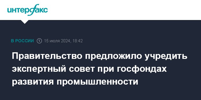 Москва. 15 июля. INTERFAX.RU - Правительство предлагает создать при государственных фондах развития промышленности экспертный совет, который сможет принимать решение о финансовой поддержке для промышленных предприятий. Об этом говорится во внесенном в Госдуму законопроекте № 671661-8.