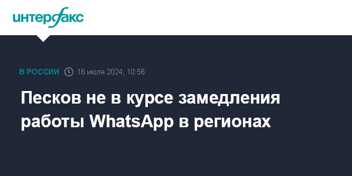 Песков не в курсе замедления работы WhatsApp в регионах