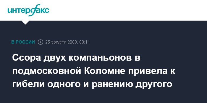 Ссора двух компаньонов в подмосковной Коломне привела к гибели одного и ранению другого