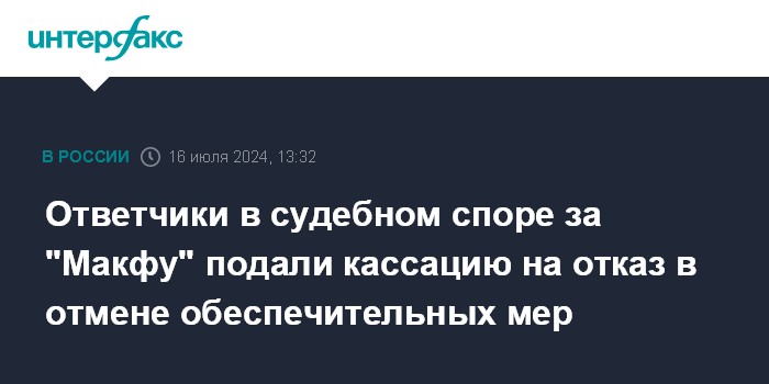 В пресс-службе Челябинского областного суда "Интерфаксу" сообщили, что жалобы поданы на решение Челябинского областного суда от 5 июля, которым оставлено в силе определение Центрального районного суда Челябинска от 28 марта 2024 года об обеспечении иска об обращении в доход государства имущества ответчиков по делу "Макфы".