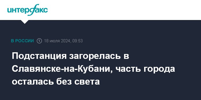 Москва. 18 июля. INTERFAX.RU - Часть жителей города Славянска-на-Кубани Краснодарского края лишилась без электроснабжения из-за пожара на подстанции, сообщил глава администрации Славянского района Роман Синяговский в своем телеграм-канале в четверг.