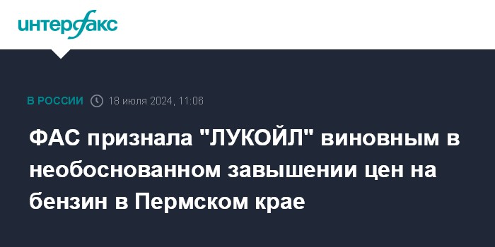 ФАС признала "ЛУКОЙЛ" виновным в необоснованном завышении цен на бензин в Пермском крае