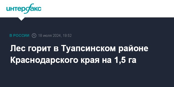 Лес горит в Туапсинском районе Краснодарского края на 1,5 га