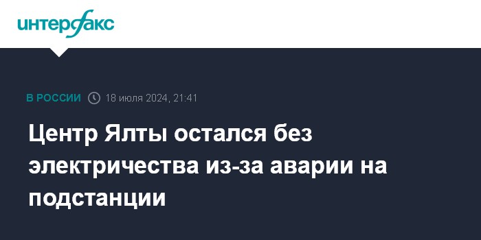Москва. 18 июля. INTERFAX.RU - Авария на подстанции привела к отключению электричества в центре Ялты, сообщили в четверг в администрации города.