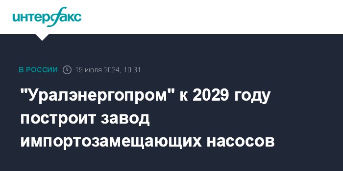 "Уралэнергопром" к 2029 году построит завод импортозамещающих насосов