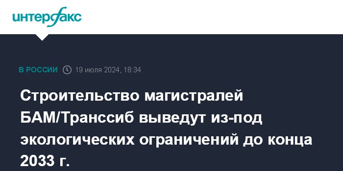 Строительство магистралей БАМ/Транссиб выведут из-под экологических ограничений до конца 2033 г.