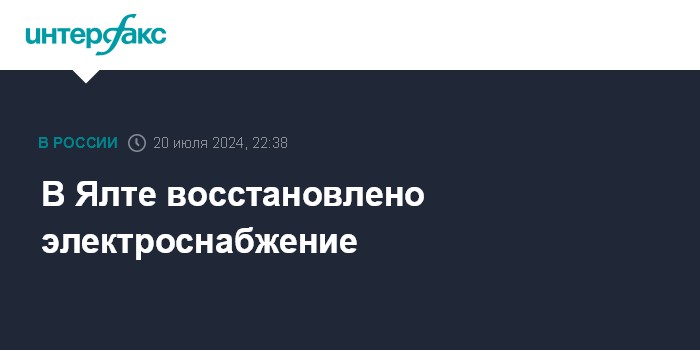 Москва. 20 июля. INTERFAX.RU - Энергетики восстановили подачу электричества в Ялте, нарушенное аварией на подстанции, сообщили в субботу в администрации города.