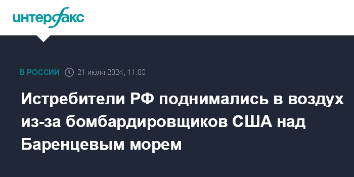 Истребители РФ поднимались в воздух из-за бомбардировщиков США над Баренцевым морем