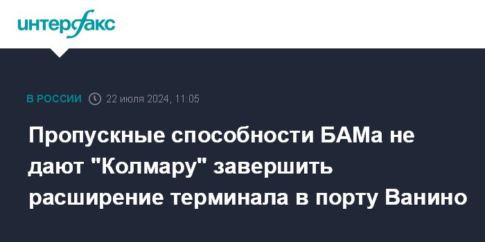 Пропускные способности БАМа не дают "Колмару" завершить расширение терминала в порту Ванино