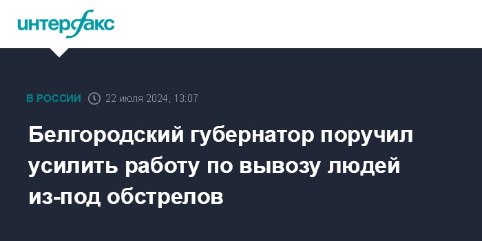 Москва. 22 июля. INTERFAX.RU - Губернатор Белгородской области Вячеслав Гладков на заседании областного правительства в понедельник дал задание главам приграничных муниципалитетов организовать ежедневный подомовой обход с целью убедить жителей в необходимости выезда в пункты временного размещения.
