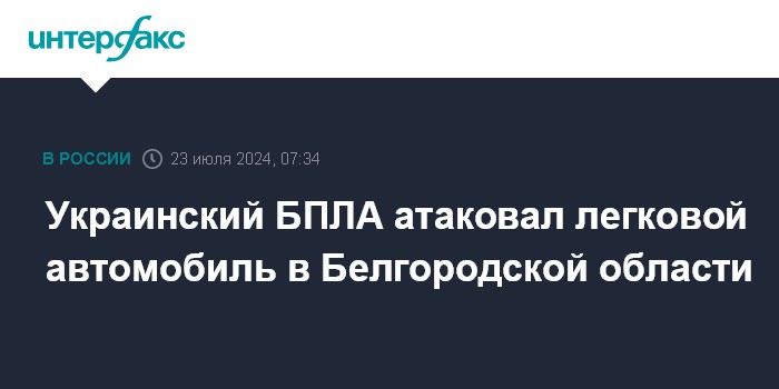 Москва. 23 июля. INTERFAX.RU - Губернатор Белгородской области Вячеслав Гладков сообщил об атаке беспилотника ВСУ на легковое транспортное средство в селе Щетиновка, в результате пострадали трое мужчин.