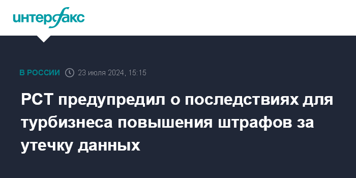 РСТ предупредил о последствиях для турбизнеса повышения штрафов за утечку данных