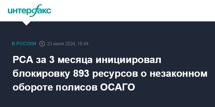 РСА за 3 месяца инициировал блокировку 893 ресурсов о незаконном обороте полисов ОСАГО