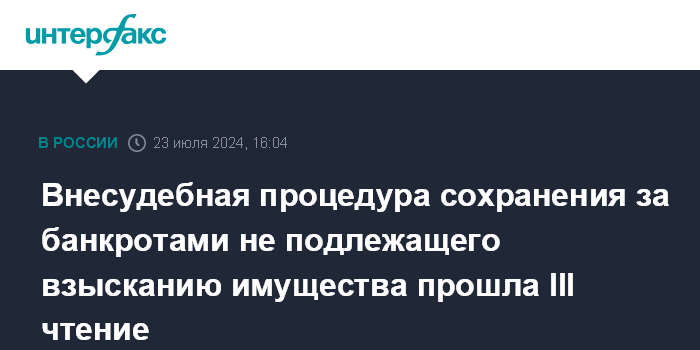 Внесудебная процедура сохранения за банкротами не подлежащего взысканию имущества прошла III чтение